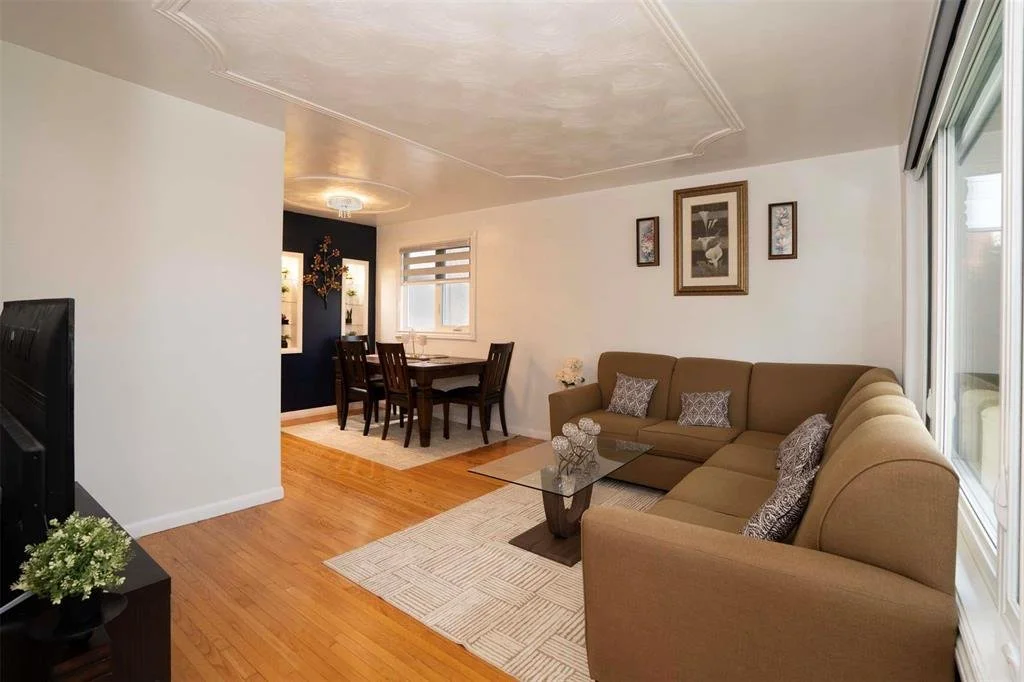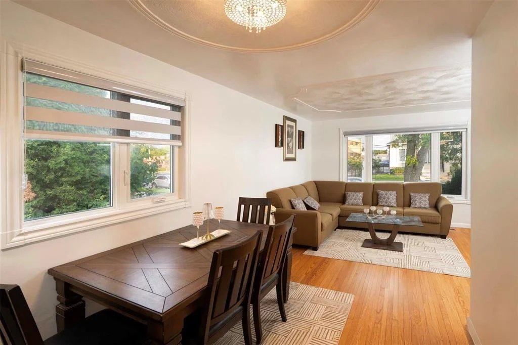 ✅ Bright and spacious living/dining area with refinished hardwood floors
